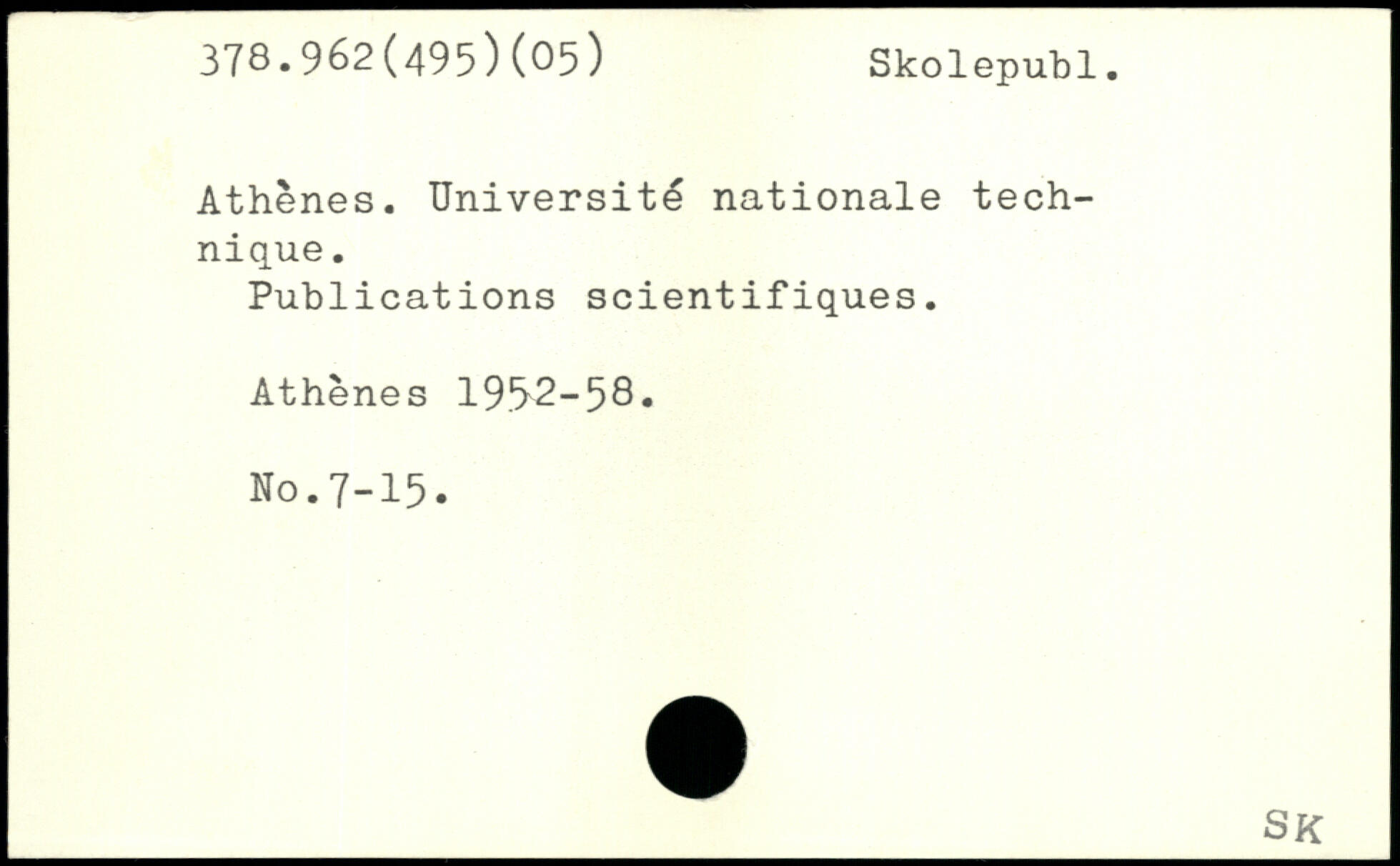 Athènes. Université nationale technique. Publications scientifiques. Athènes 1952-58. No.7-15.