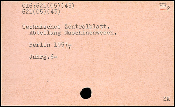 Technisches Zentralhlatt. Abteilung Maschinenwesen.