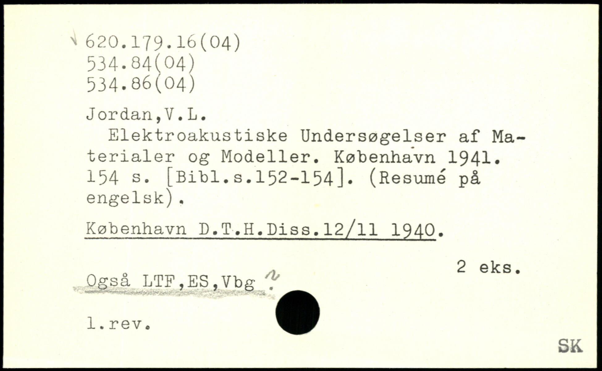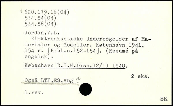 Elektroakustiske Undersøgelser af Materialer og Modeller.