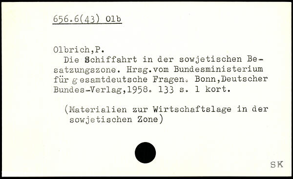 Die Schiffahrt in der sowjetischen Besatzungszone. Hrsg.vom Bundesministerium für gesamtdeutsche Fragen.