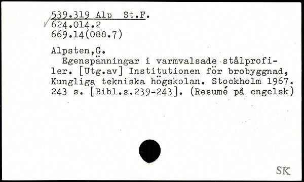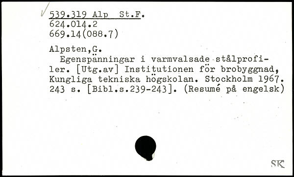 Egenspanningar i varmvalsade■stålprofiler. [Utg.av] Institutionen för brobyggnad, Kungliga tekniska hogskolan.