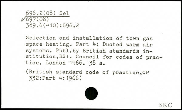 Selection and installation of town gas space heating. Part 4: Ducted warm air systems.