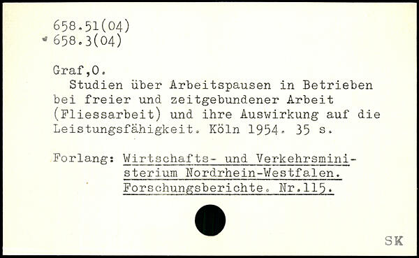 Studien Über Arbeitspausen in Betrieben bei freier und zeitgebundener Arbeit (Fliessarbeit) und ihre Auswirkung auf die Leistungsfähigkeit.