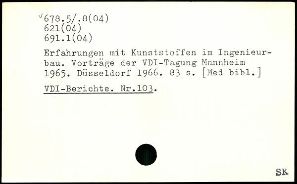 Erfahrungen mit Kunststoffen im Ingenieurbau. Vorträge der VDI-Tagung Mannheim 1965. Düsseldorf 1966.