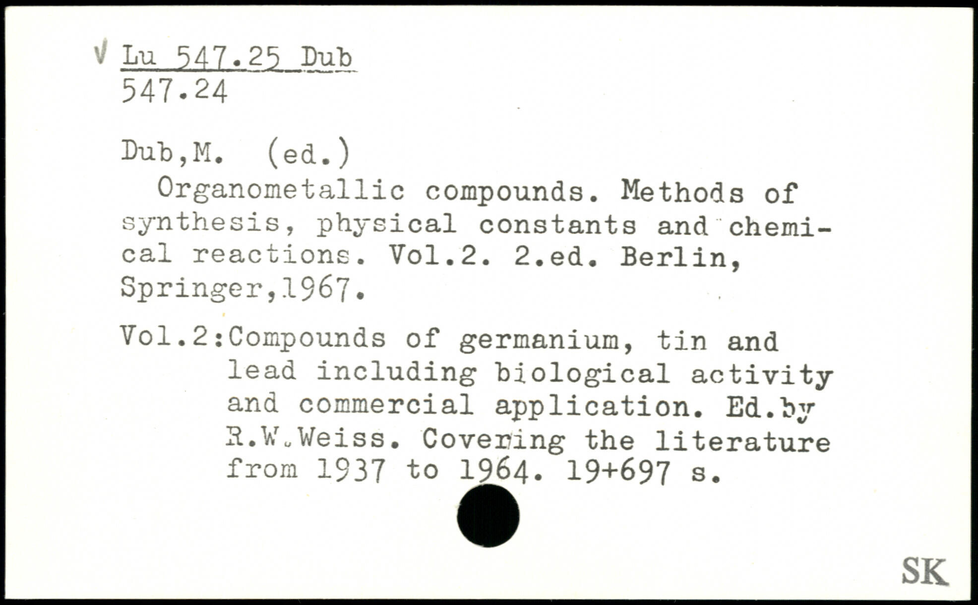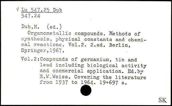 Organometallic compounds. Methods of synthesis, physical constants and chemical reactions.