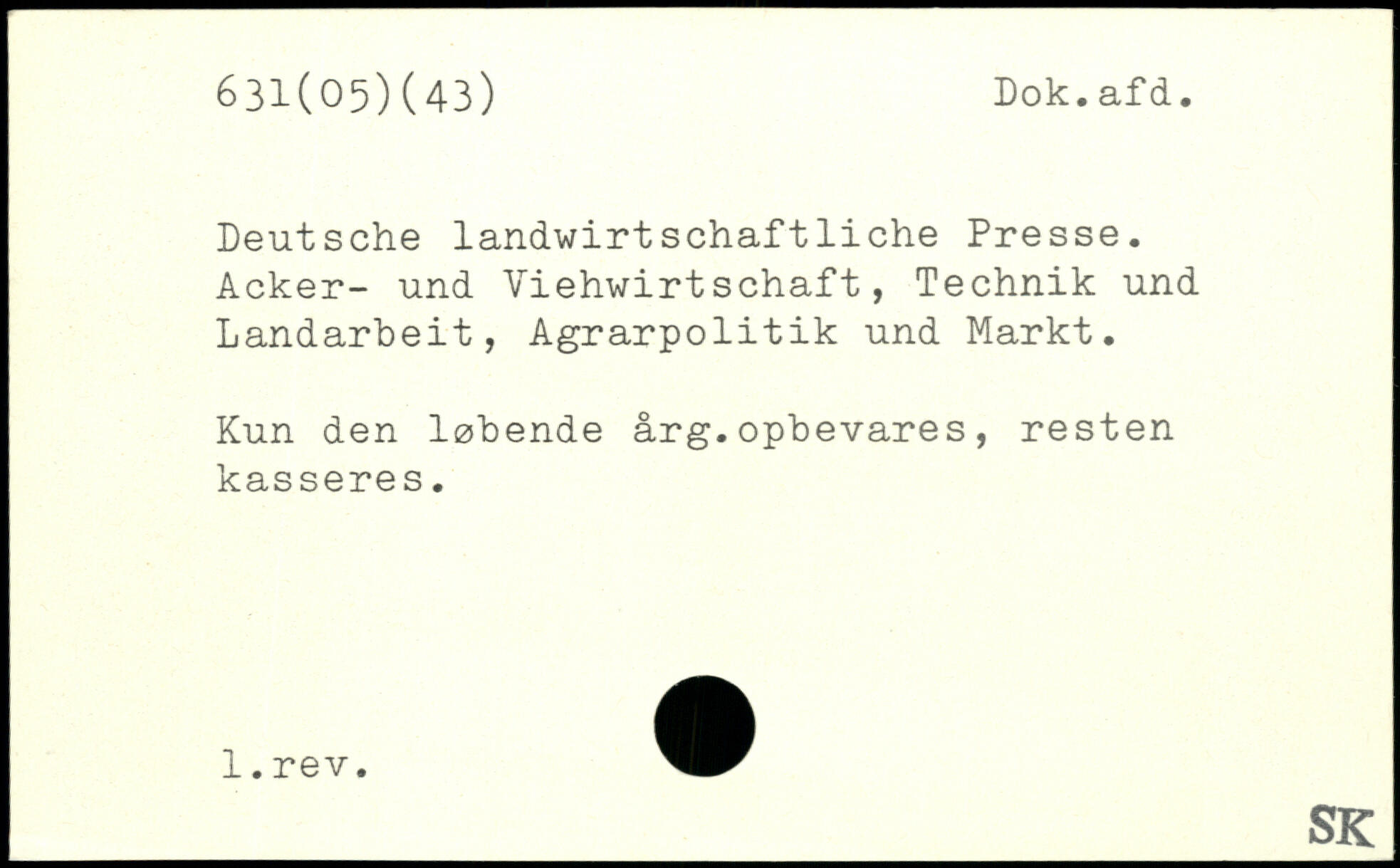 Deutsche landwirtschaftliche Presse. Acker- und Viehwirtschaft, Technik und Landarbeit, Agrarpolitik und Markt. Kun den lobende arg.opbevares, resten kasseres.