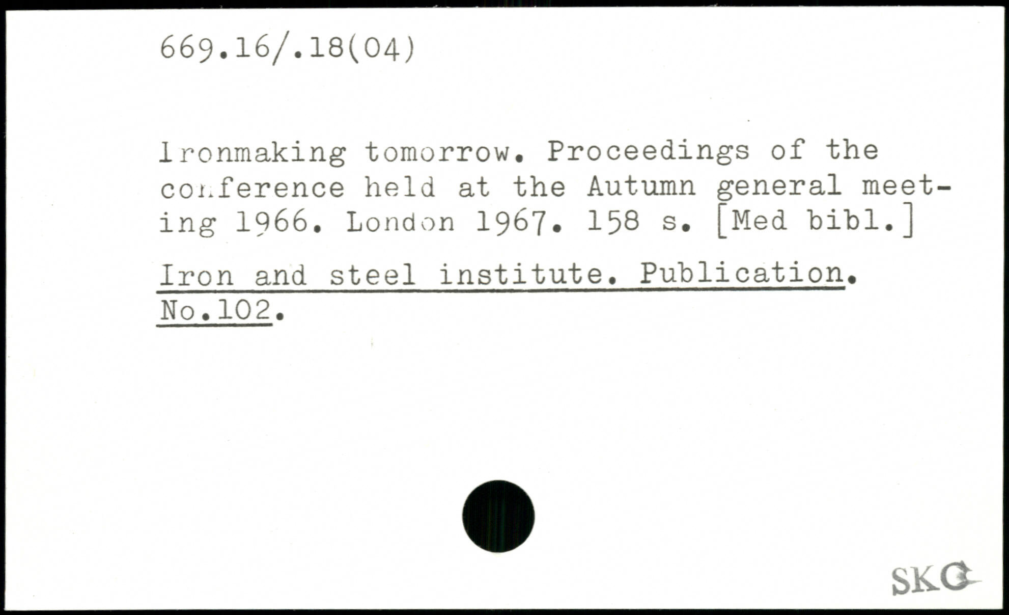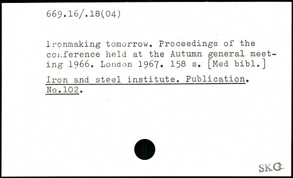 Ironmaking tomorrow. Proceedings of the conference held at the Autumn general meeting 1966.