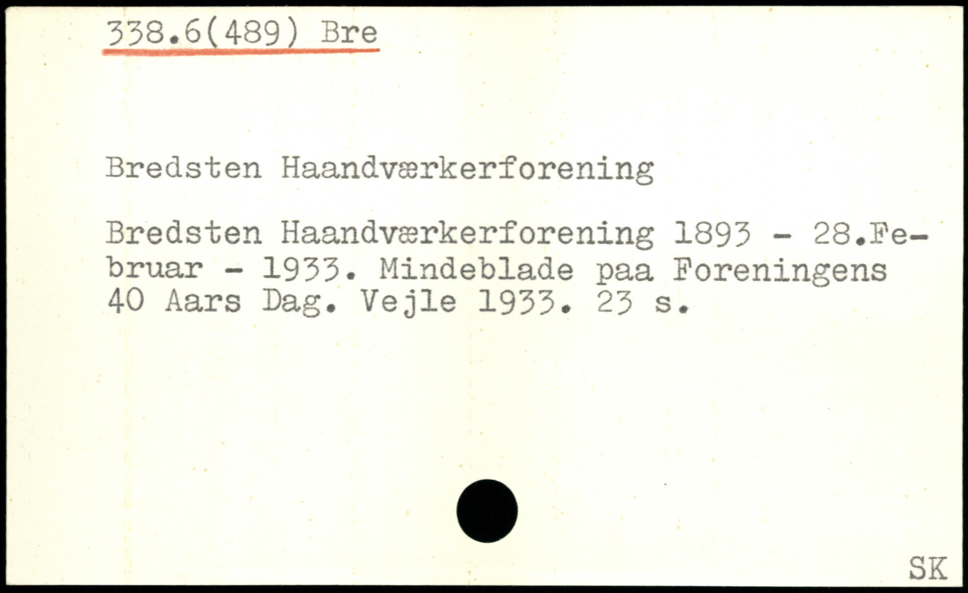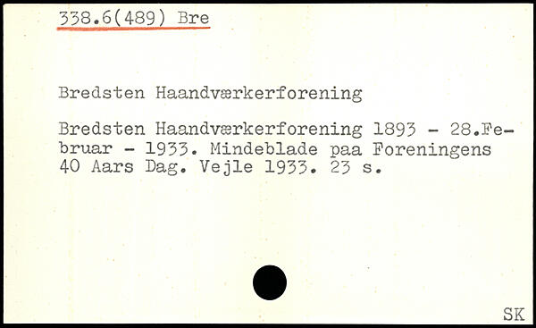 Bredsten Haandværkerforening Bredsten Haandværkerforening 1893 - 28.Februar - 1933. Mindeblade paa Foreningens 40 Aars Dag. Vejle 1933.