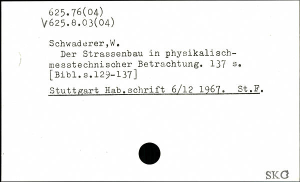 Der Strassenbau in physikalischmesstechnischer Betrachtung.