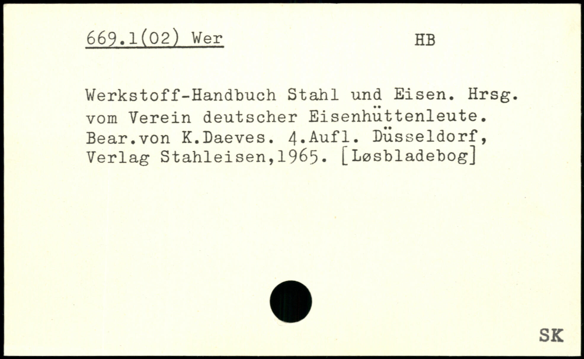 Werkstoff-Handbuch Stahl und Eisen. Hrsg, vom Verein deutscher Eisenhuttenleute. Bear.von K.Daeves.
