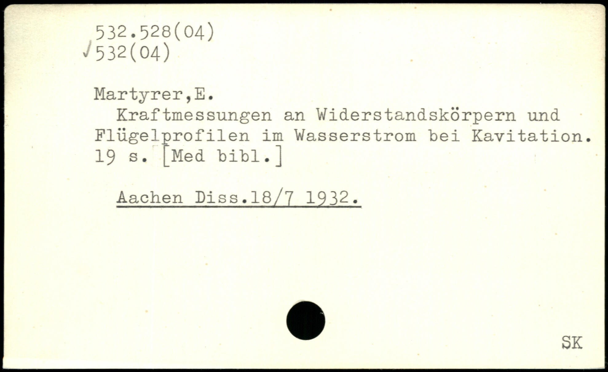 Kraftmessungen an Widerstandskörpern und Flügelprofilen im Wasserstrom bei Kavitation.