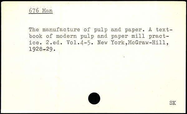 The manufacture of pulp and paper. A textbook of modern pulp and paper mill practice.