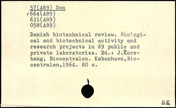 Danish biotechnical review. Biological and biotechnical activity and research projects in 69 public and private laboratories. Ed.: J.Kors-bang, Biocentralen.