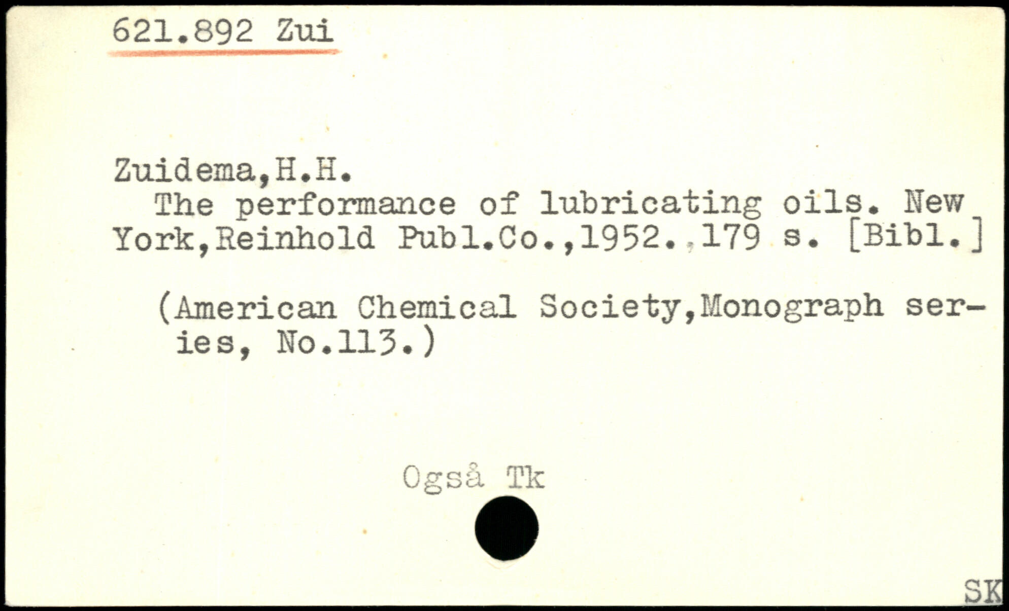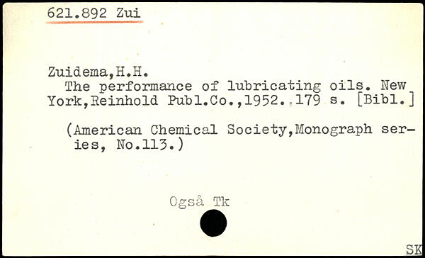 The performance of lubricating oils. New York,Reinhold Publ.Co.,1952.
