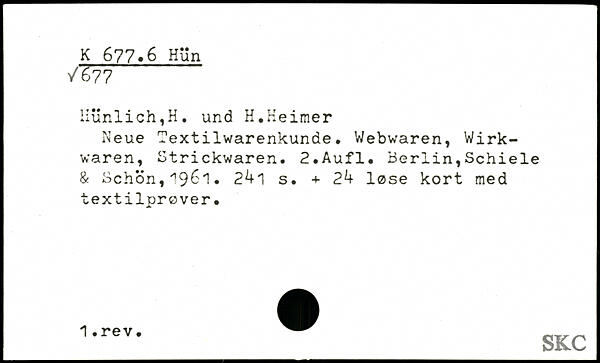 iiunlich'H. und H.Heimer Neue Textilwarenkunde. Webwaren, Wirkwaren, Strickwaren.