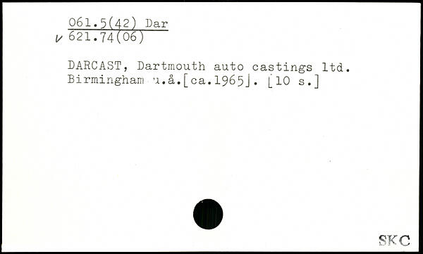 DARCAST, Dartmouth auto castings ltd. Birmingham u.a.[ca.1965J. [