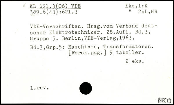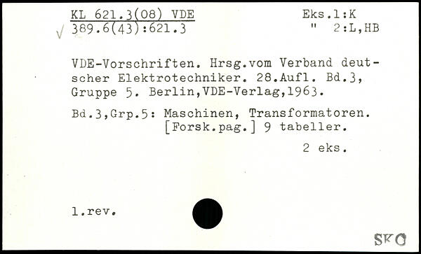 VDE-Vorschriften. Hrsg.vom Verband deutscher Elektrotechniker.