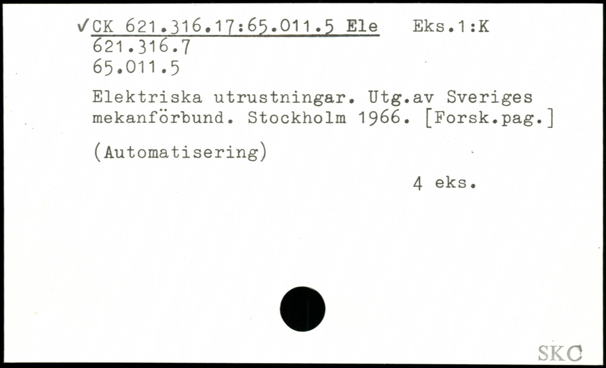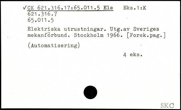 Elektriska utrustningar. Utg.av Sveriges mekanförbund.