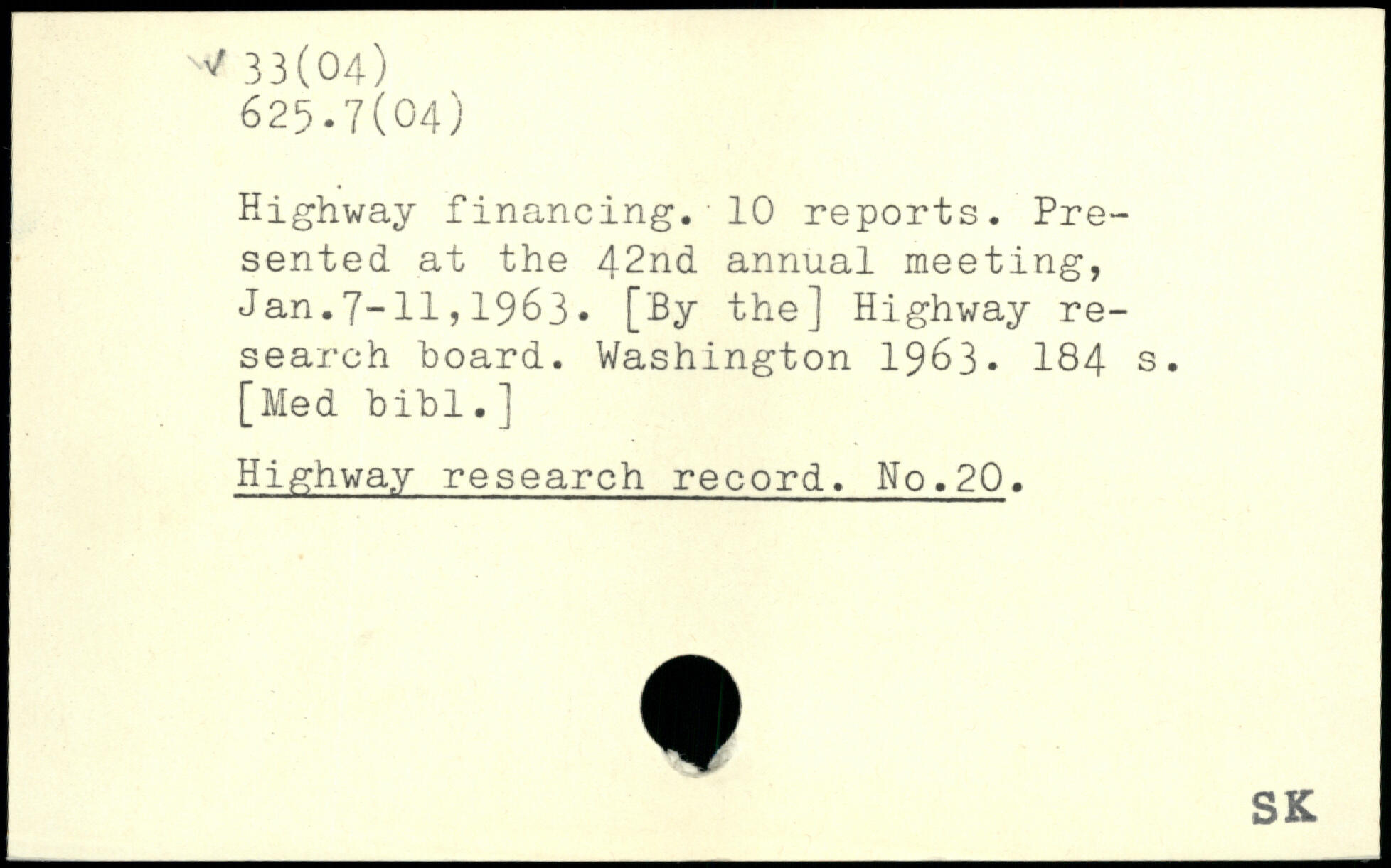 Highway financing. 10 reports. Presented at the 42nd annual meeting, Jan.7-11,1963. [By the] Highway research board.