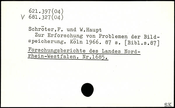 Zur Erforschung von Problemen der Bildspeicherung.