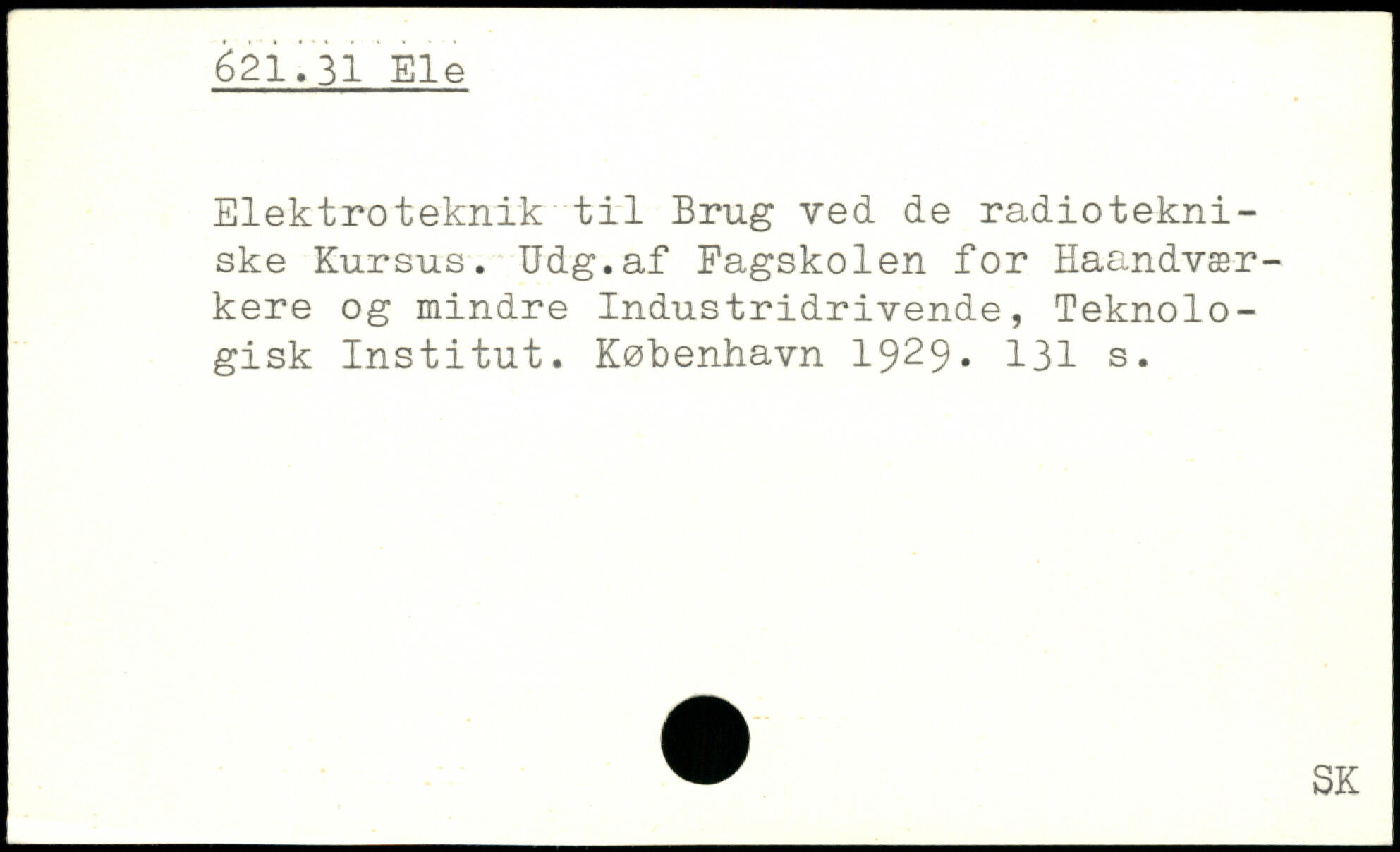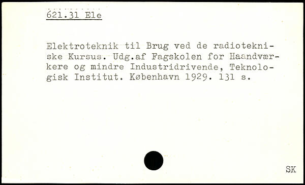 Elektroteknik til Brug ved de radiotekniske Kursus. Udg.af Fagskolen for Haandvær-kere og mindre Industridrivende, Teknologisk Institut.