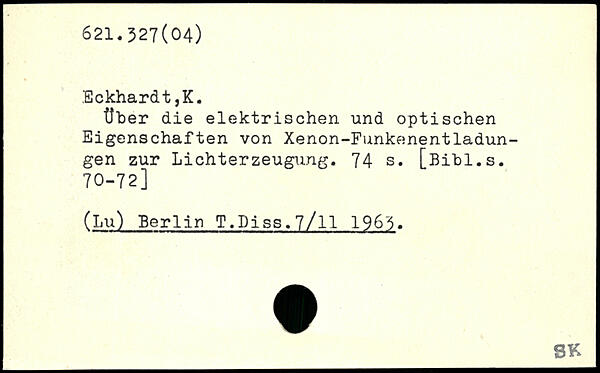 Über die elektrischen und optischen Eigenschaften von Xenon-Funkenentladungen zur Lichterzeugung.