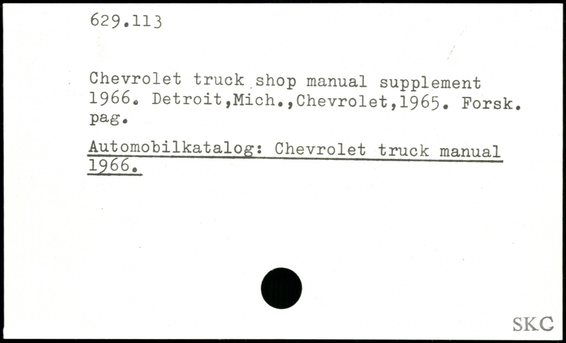Chevrolet truck shop manual supplement 1966.