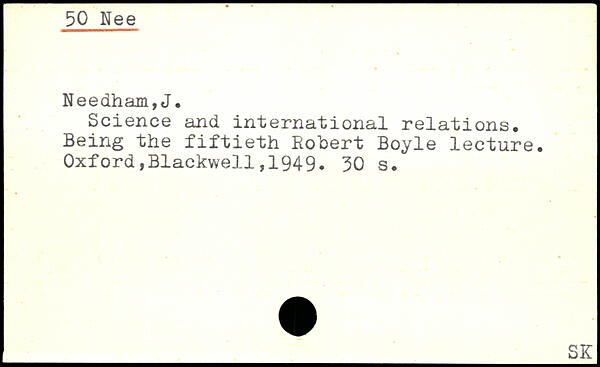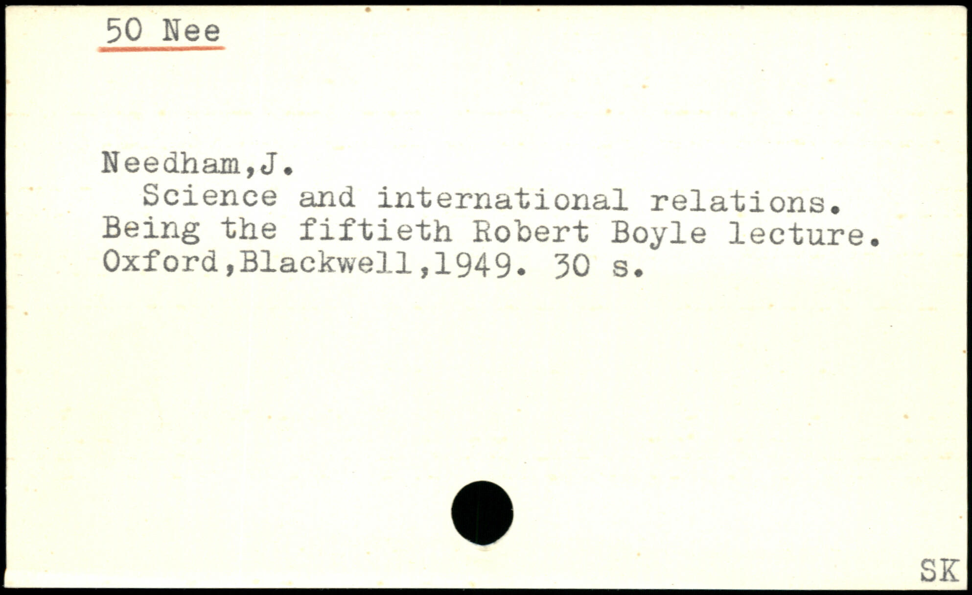 Science and international relations. Being the fiftieth Robert Boyle lecture.