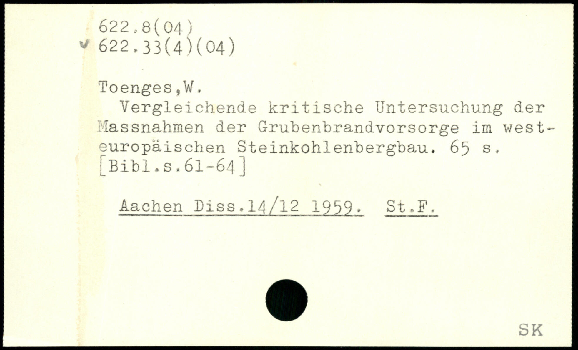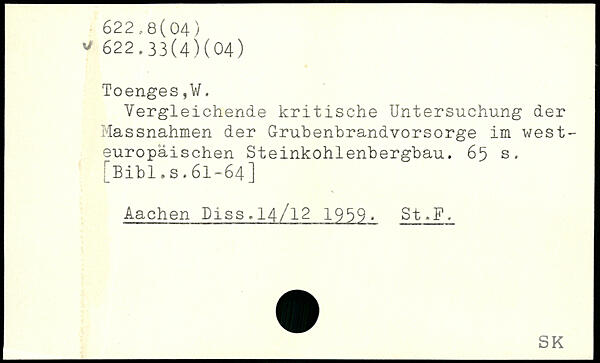 Vergleichende kritische Untersuchung der Massnahmen der Grubenbrandvorsorge im westeuropäischen Steinkohlenbergbau.