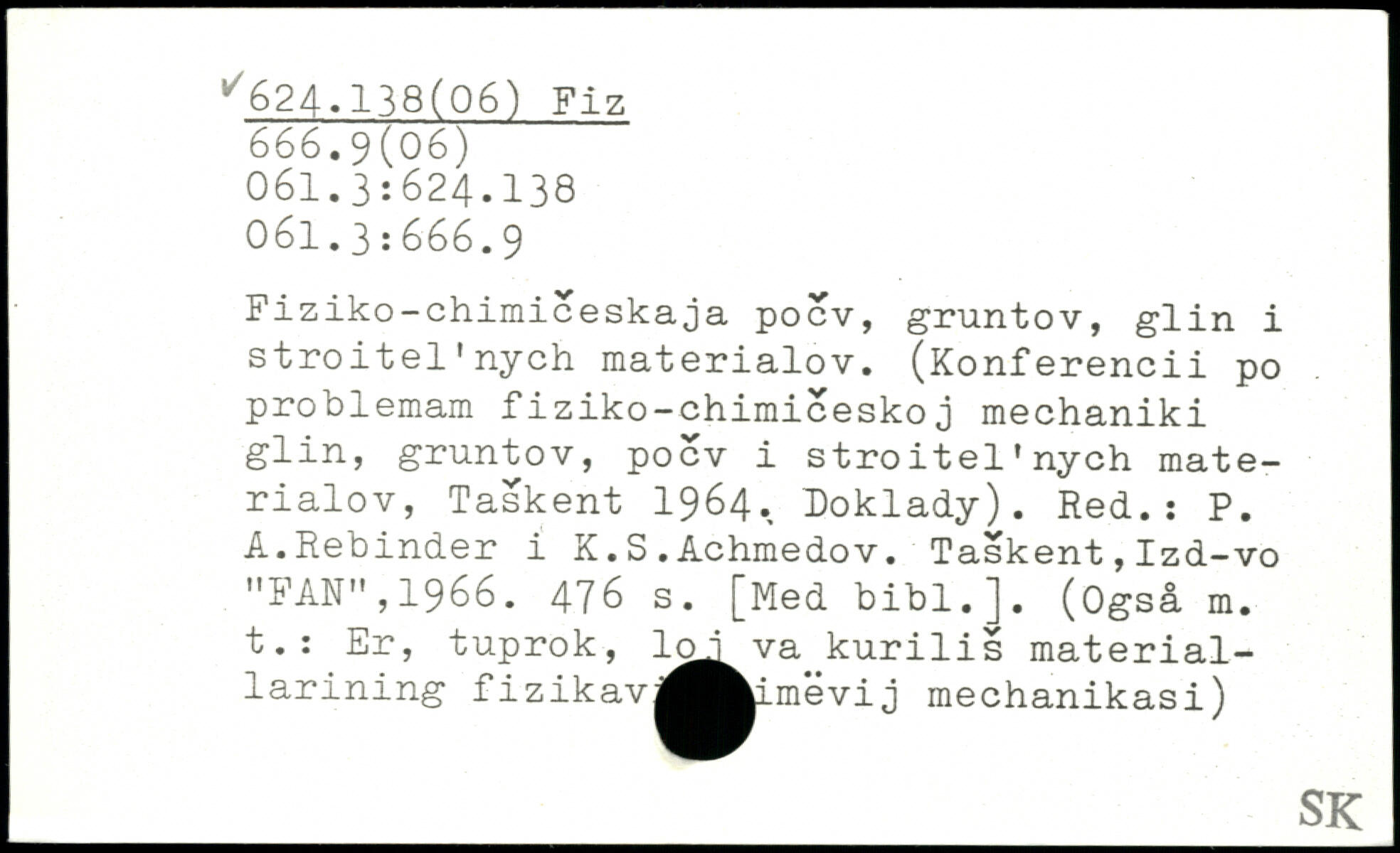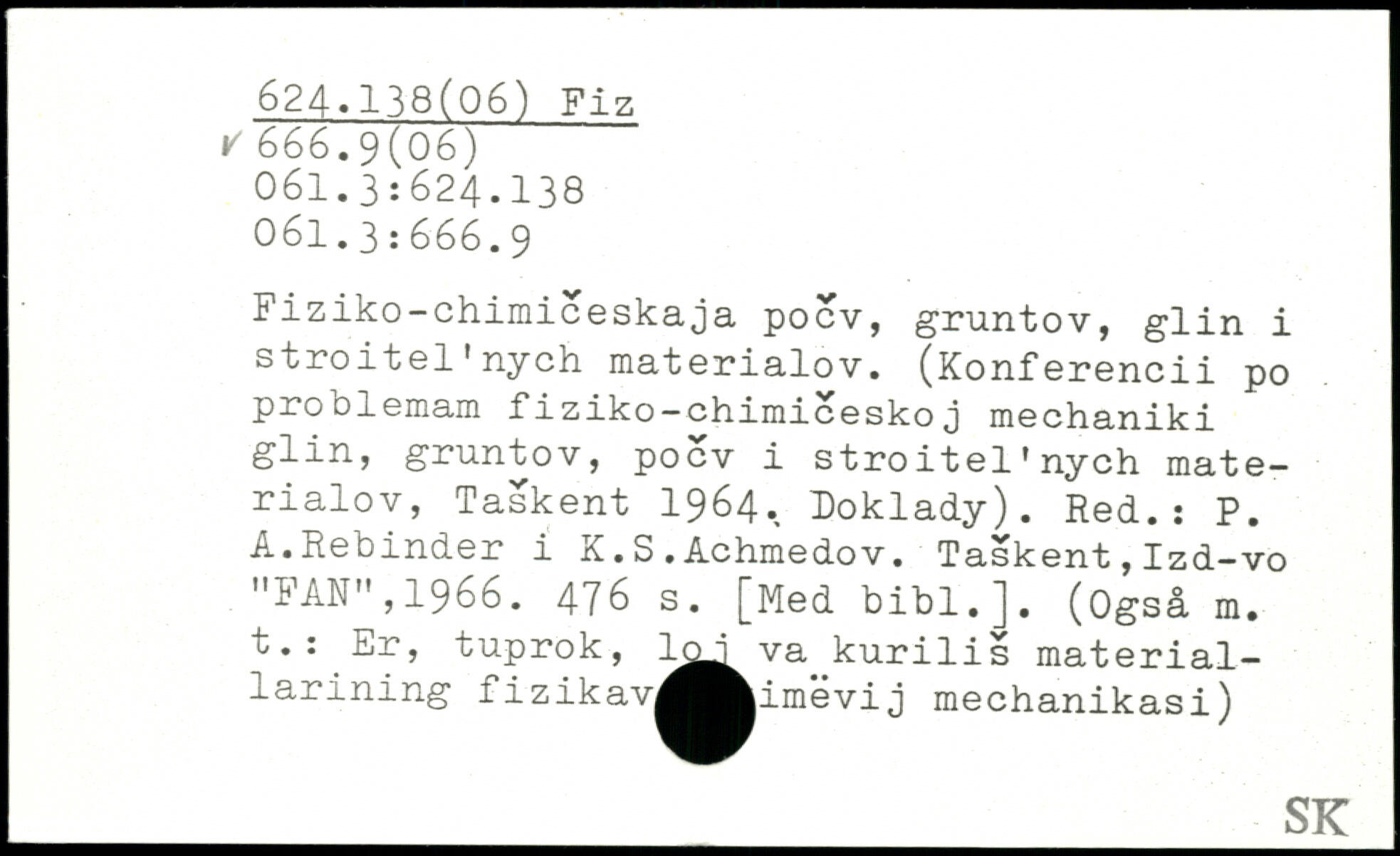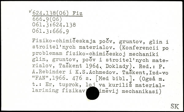 Fiziko-chimiceskaja pocv, gruntov, glin i stroitel'nych materialov. (Konferencii po problemam fiziko-chimiceskoj mechaniki glin, gruntov, pocv i stroitel'nych materialov, Taskent 1964. Doklady). Red.: P. A.Rebinder i K.S.Achmedov. Taskent,Izd-vo "PAN",1966.