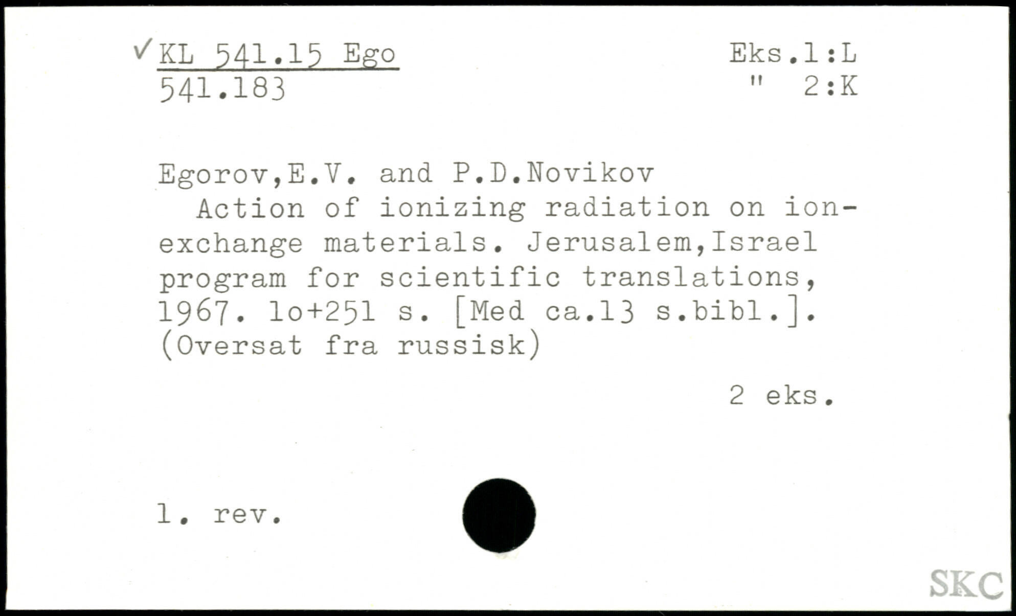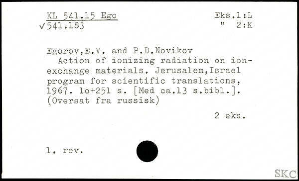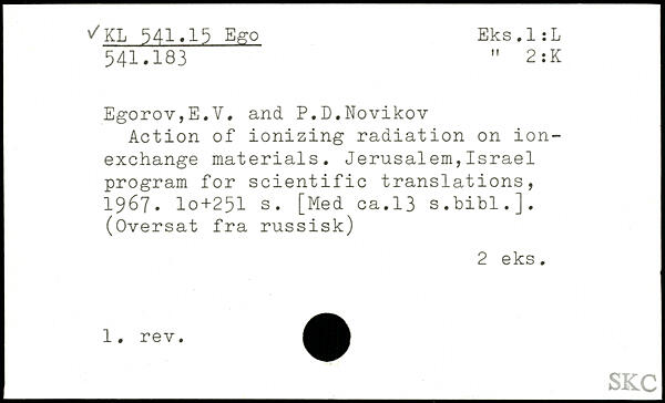 Action of ionizing radiation on ion-exchange materials. Jerusalem,Israel program for scientific translations, 1967. I0+25I s. [Med ca.l