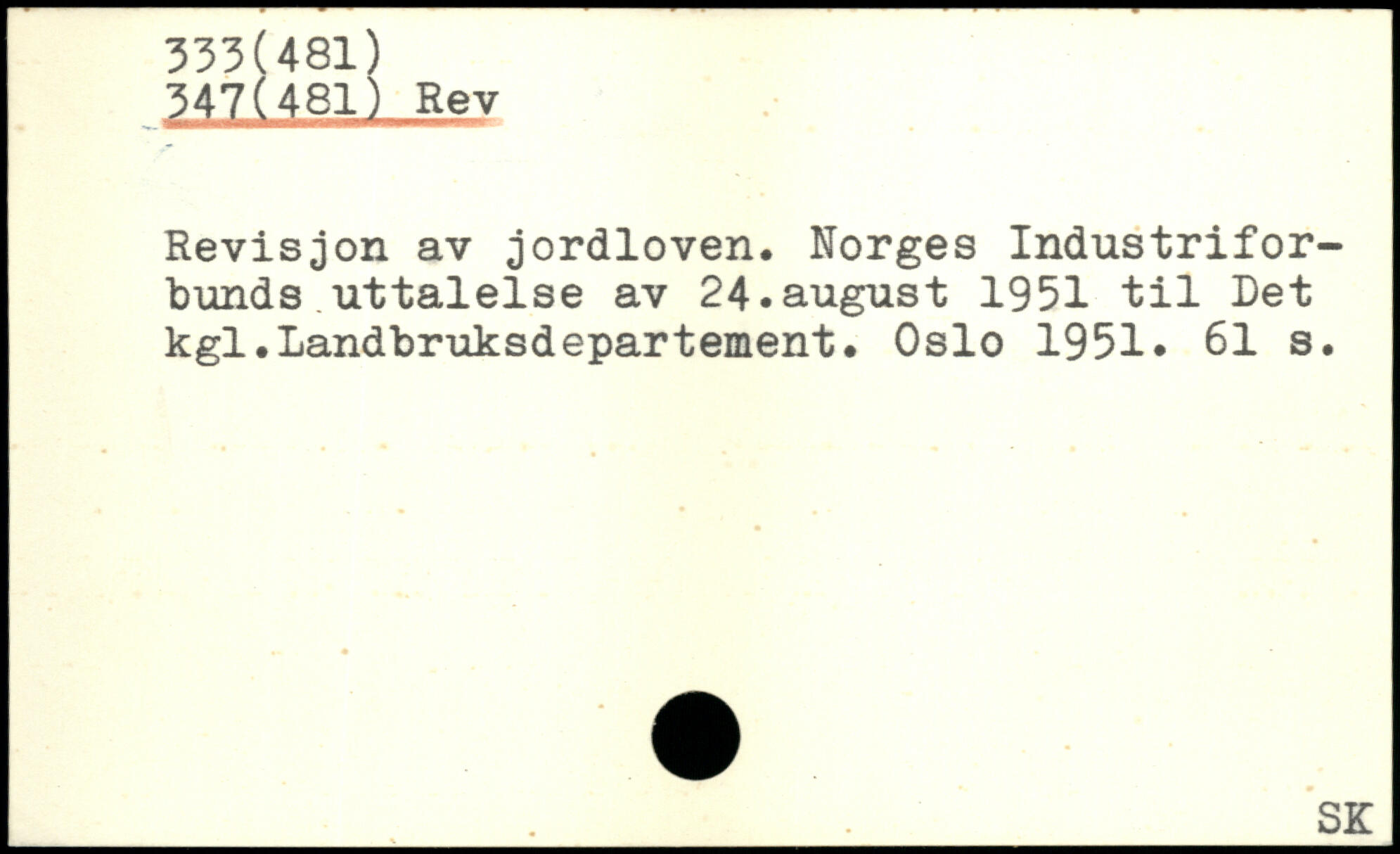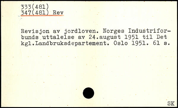 Revision av jordloven. Norges Industriforbunds ut talel s e av 24.august 1951 til Det kgl.Landbruksdepartement. Oslo 1951.