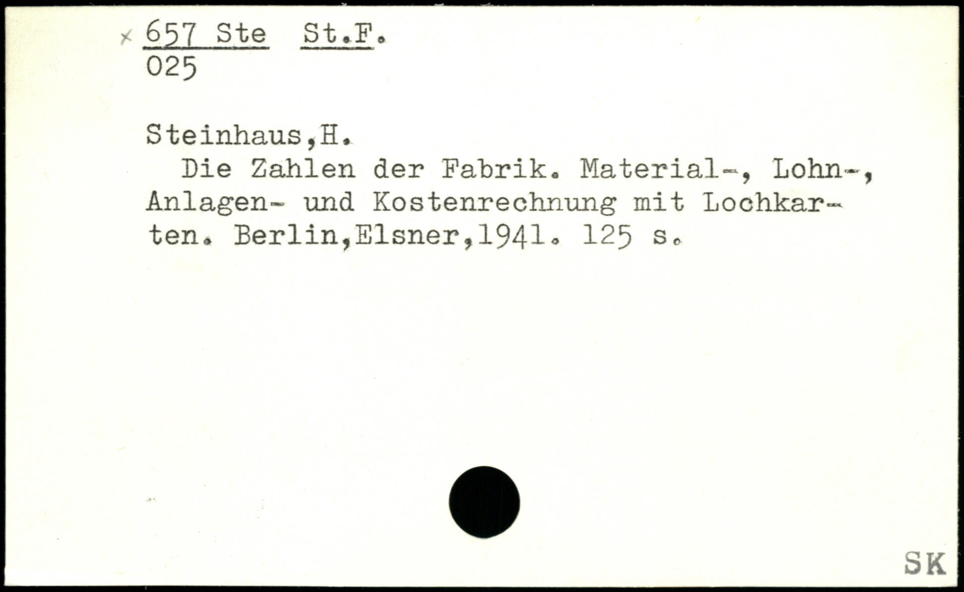 Die Zahlen der Fabrik. Material-, Lohn-, Anlagen- und Kostenrechnung mit Lochkarten.