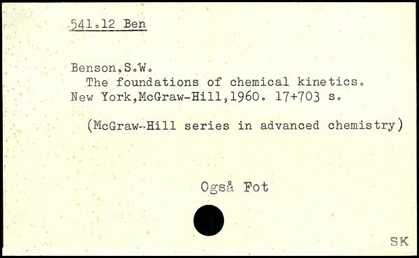 The foundations of chemical kinetics, New York,McGraw-Hill?1960.