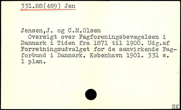 Oversigt over Fagforeningsbevægelsen i Danmark i Tiden fra 1871 til 1900. Udg.af Forretningsudvalget for de samvirkende Fagforbund i Danmark.