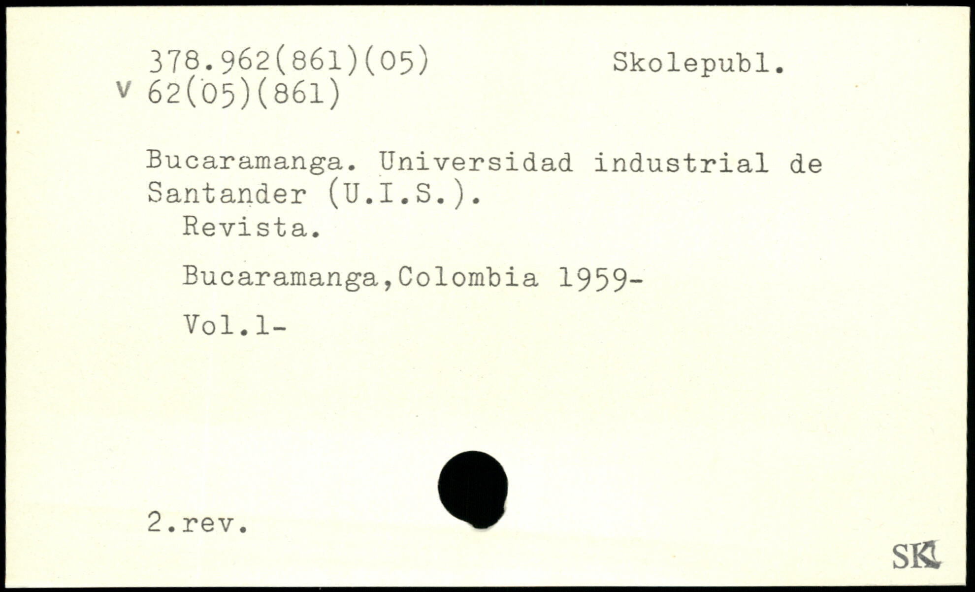 Bucaramanga. Universidad industrial de Santander (U.I.S.). Revista. Bucaramanga,Colombia 19 59— Vol.l-