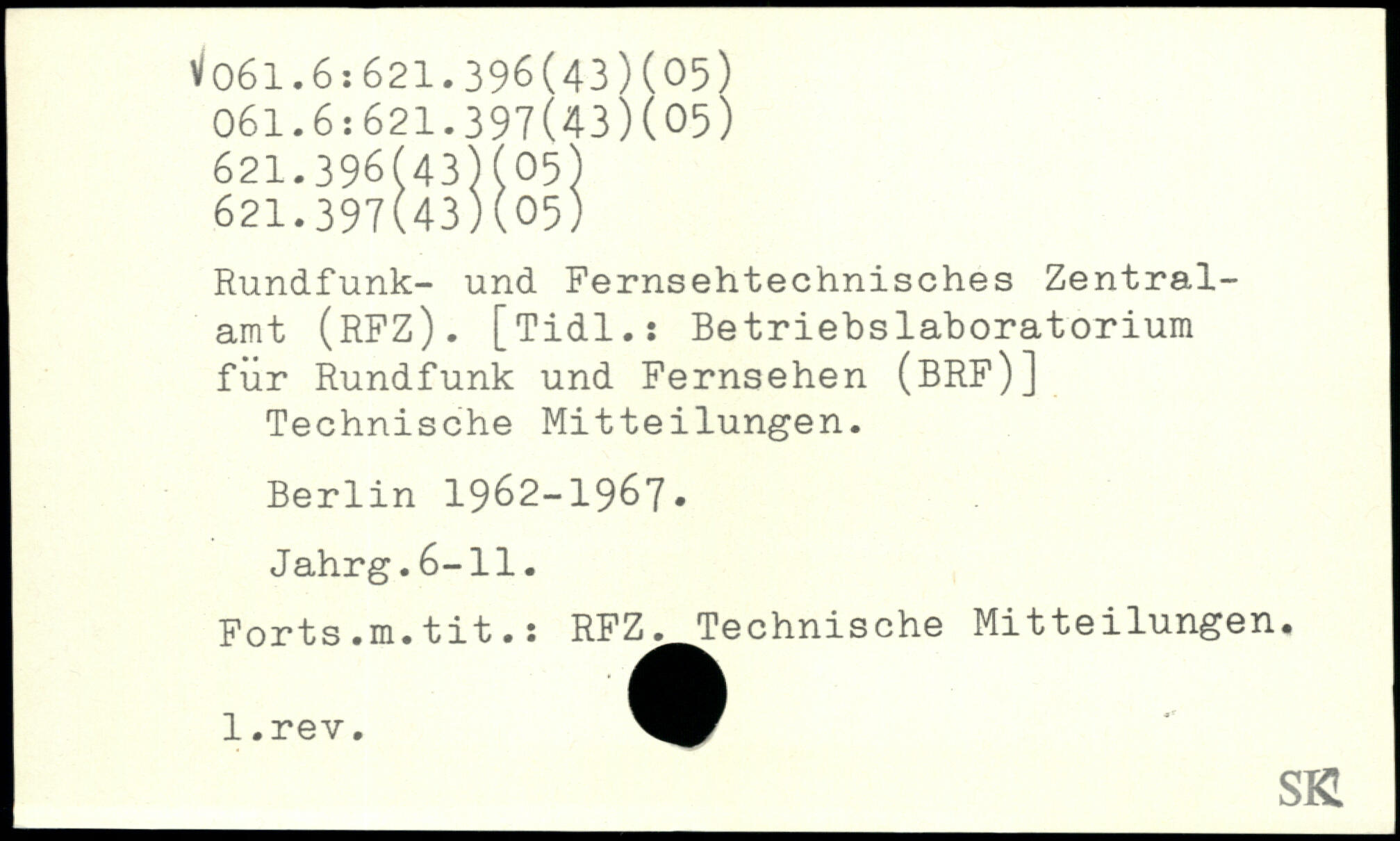 Rundfunk- und Fernsehtechnisches Zentralamt (RFZ). [Tidl.: Betriebslaboratorium für Rundfunk und Fernsehen (BRF)] Technische Mitteilungen.