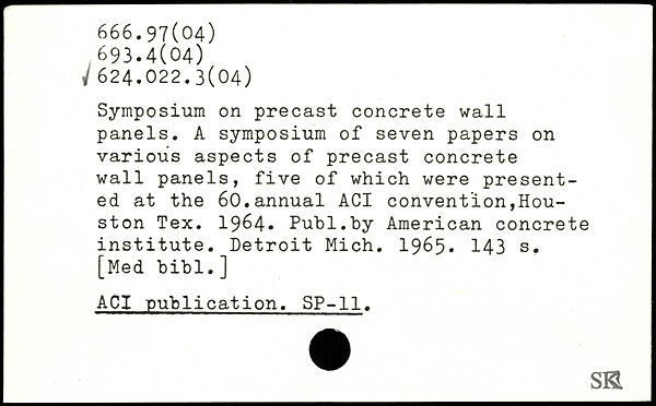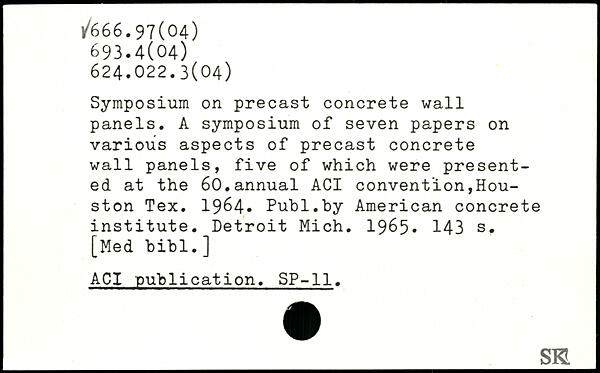 Symposium on precast concrete wall panels. A symposium of seven papers on various aspects of precast concrete wall panels, five of which were presented at the 60.annual ACI convention,Houston Tex. 1964-