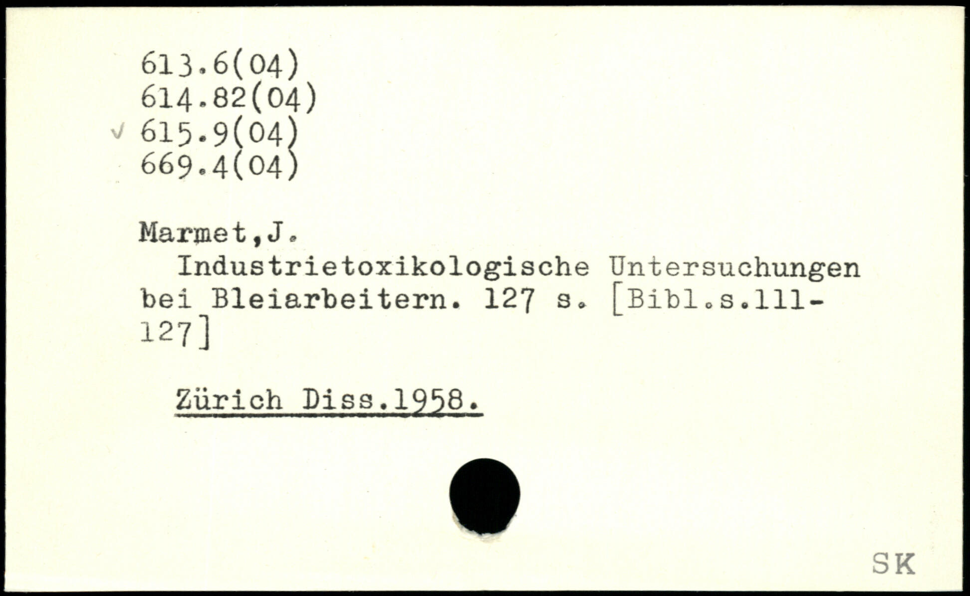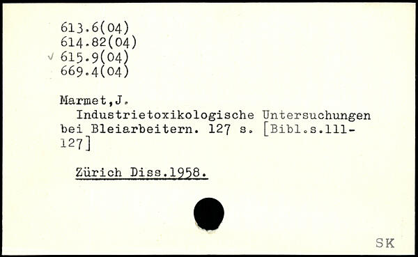 Industrietoxikologische Untersuchungen bei Bleiarbeitern.
