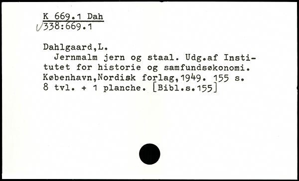 Jernmalm jern og staal. Udg.af Institutet for historie og samfundsøkonomi, København,Nordisk forlag,19^9.
