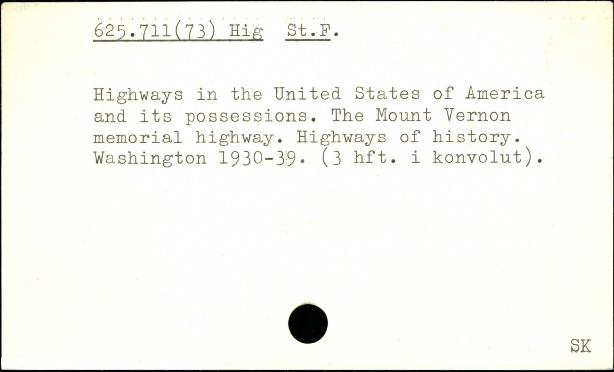 Highways in the United States of America and its possessions. The Mount Vernon memorial highway. Highways of history.