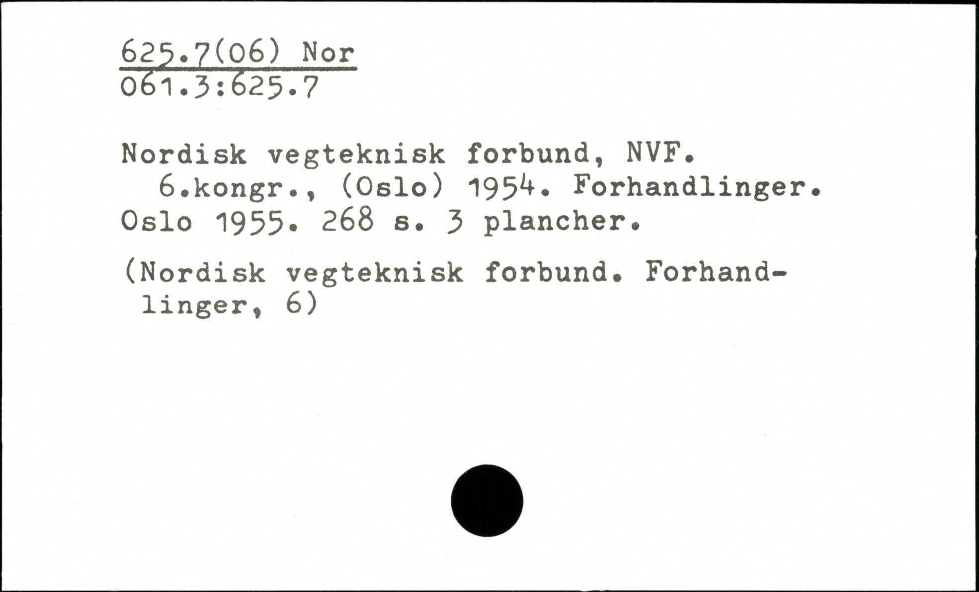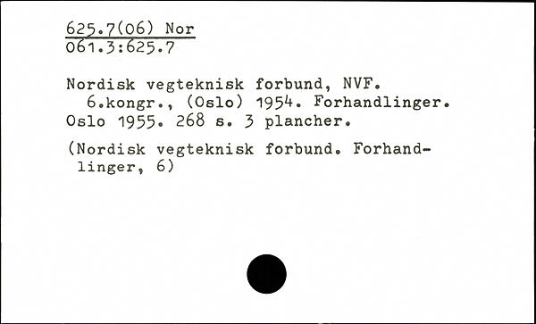 Nordisk vegteknisk forbund, NVF. 6.kongr., (Oslo) 195z+, Forhandlinger. Oslo 1955.