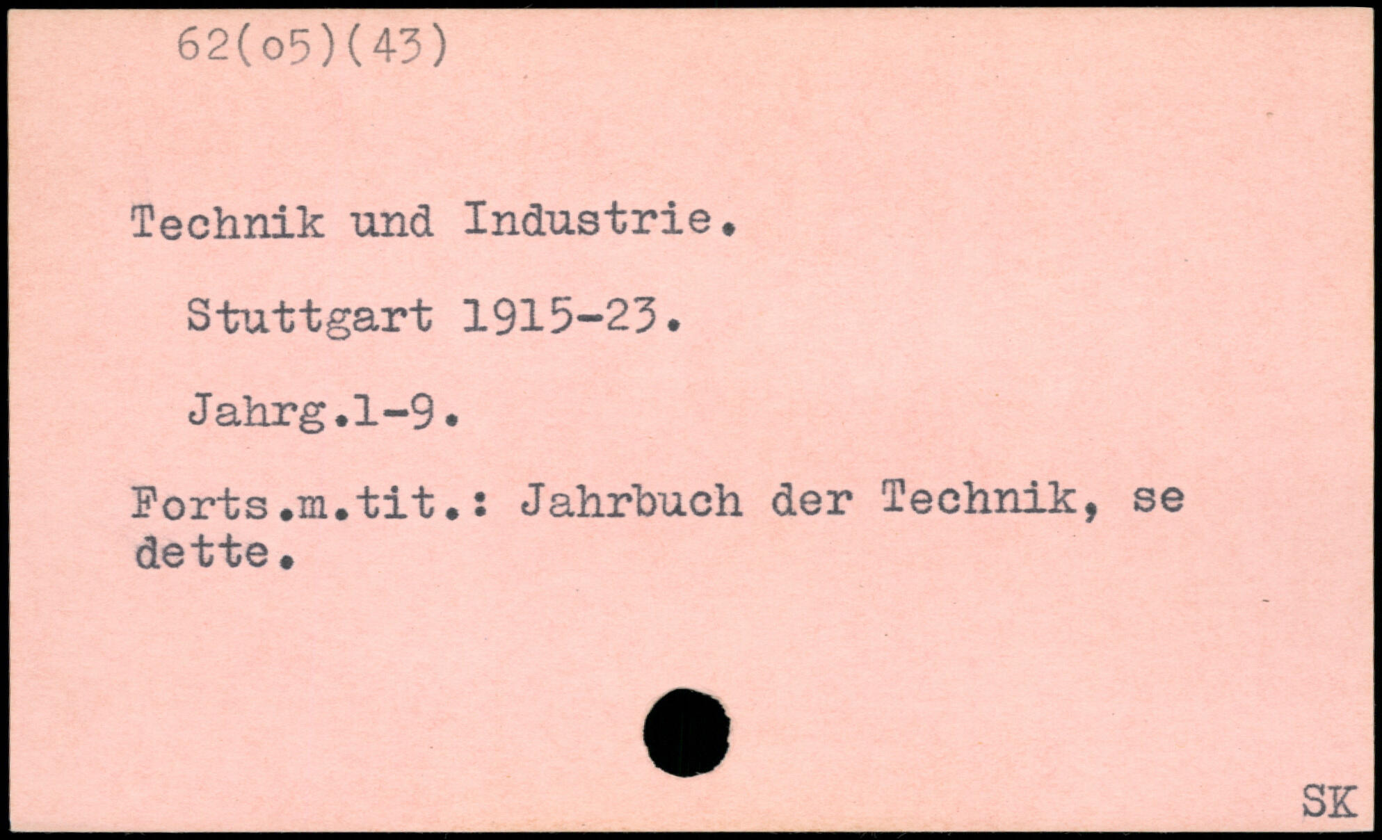 Stuttgart 1915-23. Jahrg.1-9. Forts.m.tit.: Jahrhuch der Technik, se dette.