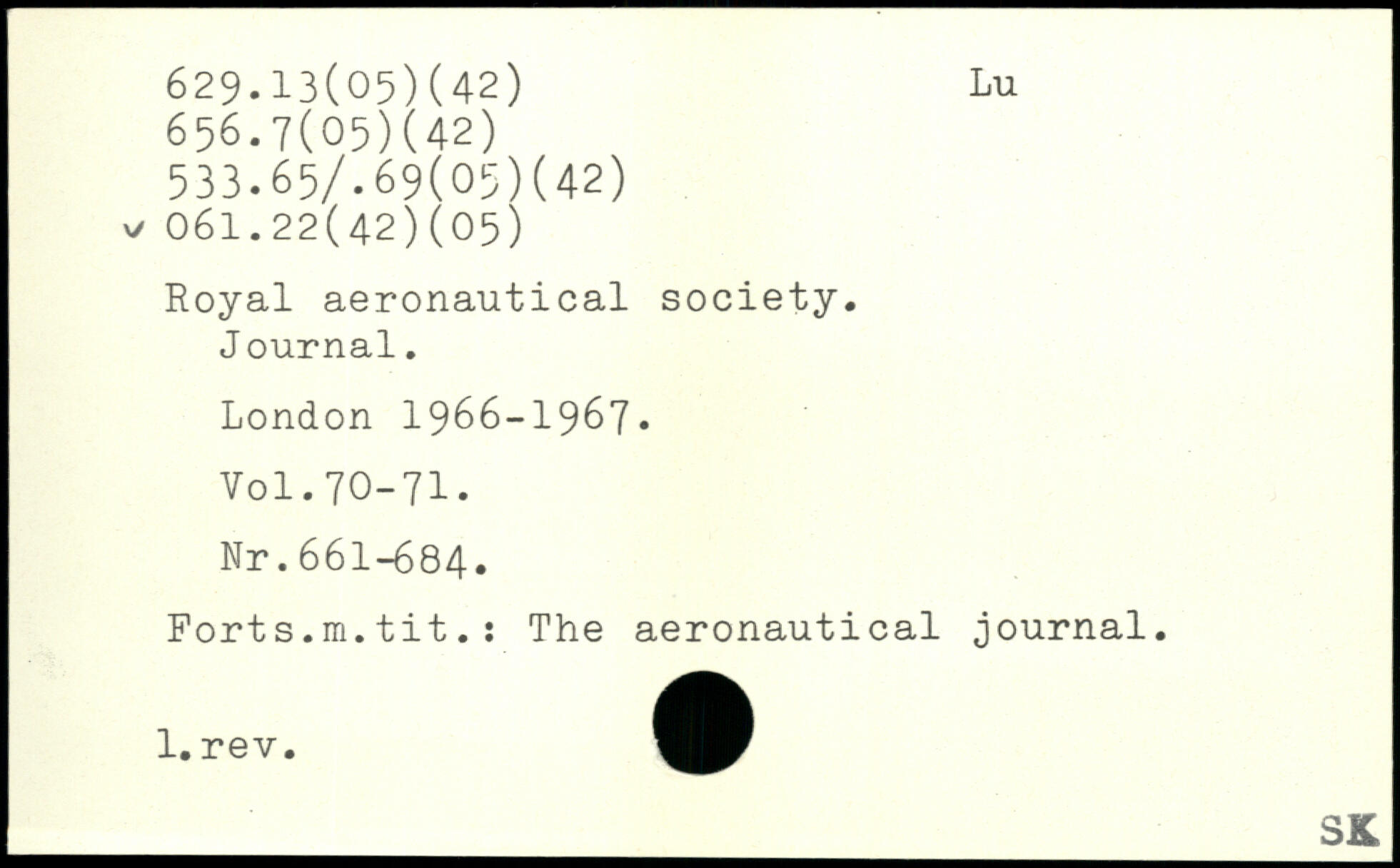 Royal aeronautical society. J ournal.
