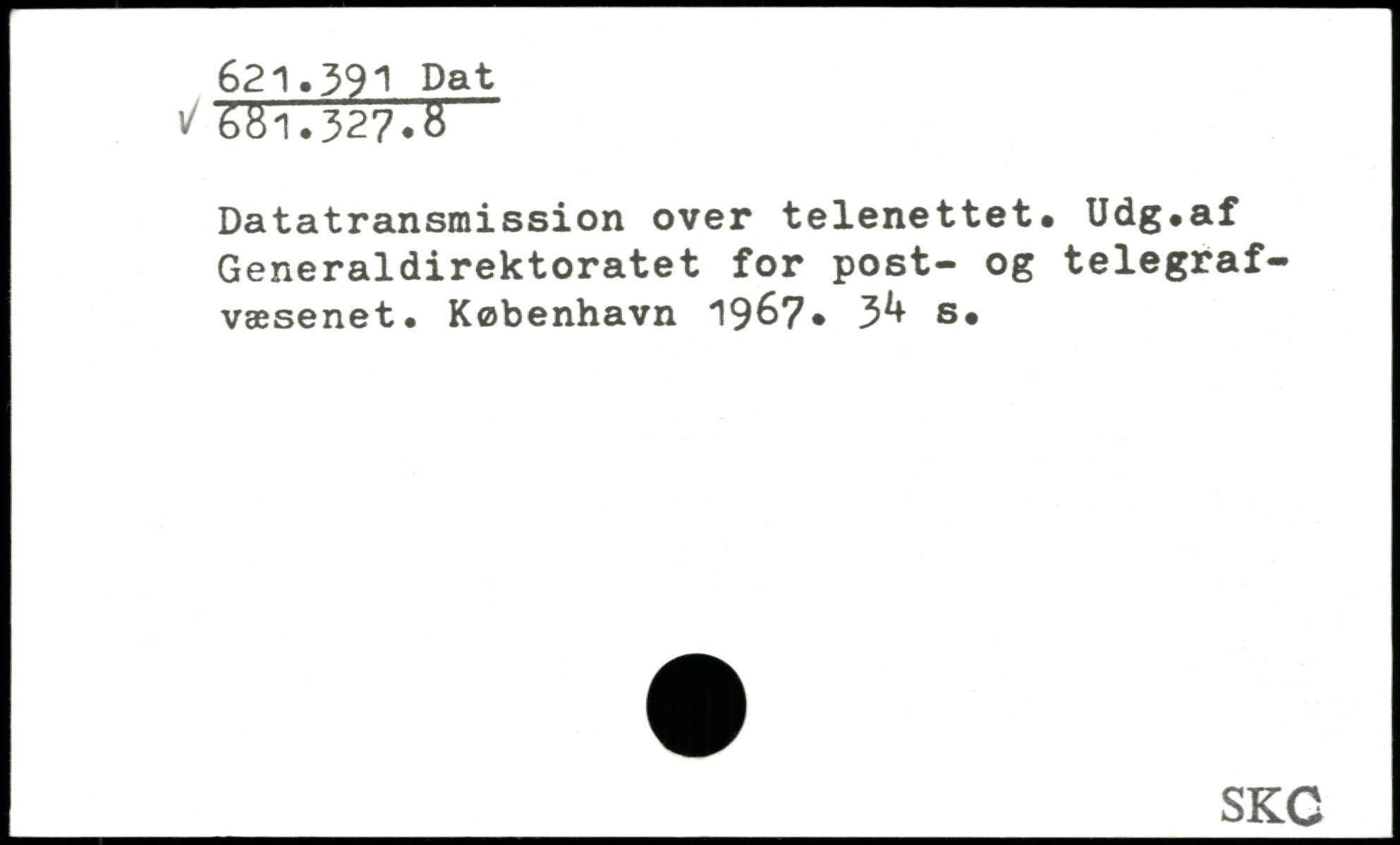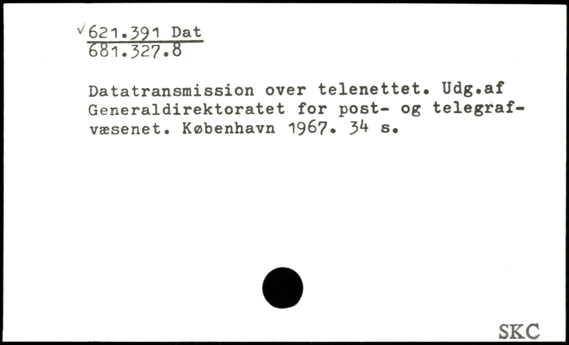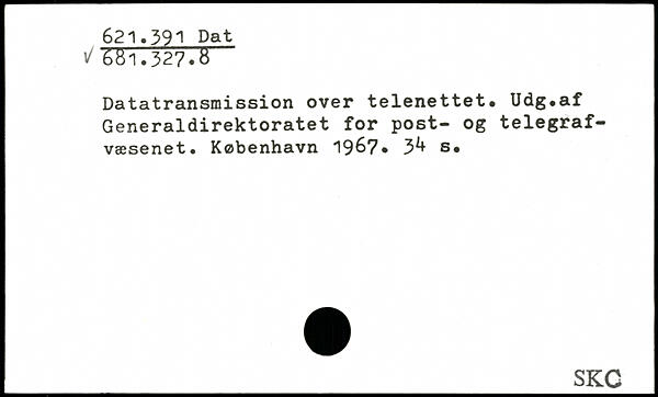 Datatransmission over telenettet. Udg.af Generaldirektoratet for post- og telegrafvæsenet. København 19&7. 3^ s.