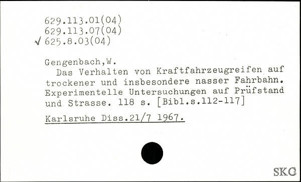 Das Verhalten von Kraftfahrzeugreifen auf trockener und insbesondere nasser Fahrbahn. Experimentelle Untersuchungen auf Prüfstand und Strasse.