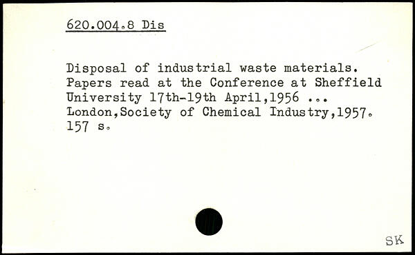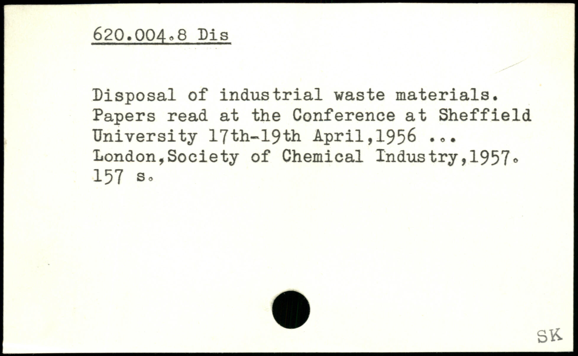 Disposal of industrial waste materials. Papers read at the Conference at Sheffield University 17th-19th April,1956. ..