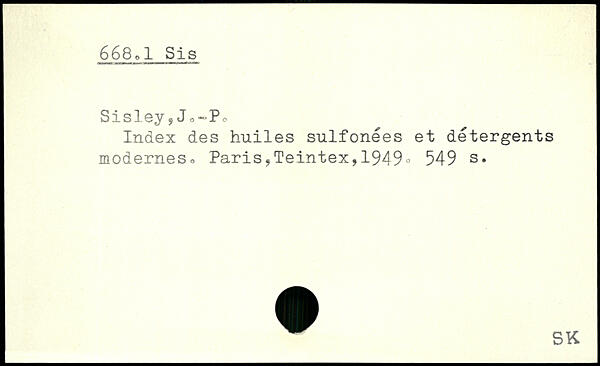 Index des huiles sulfonees et detergents modernes.