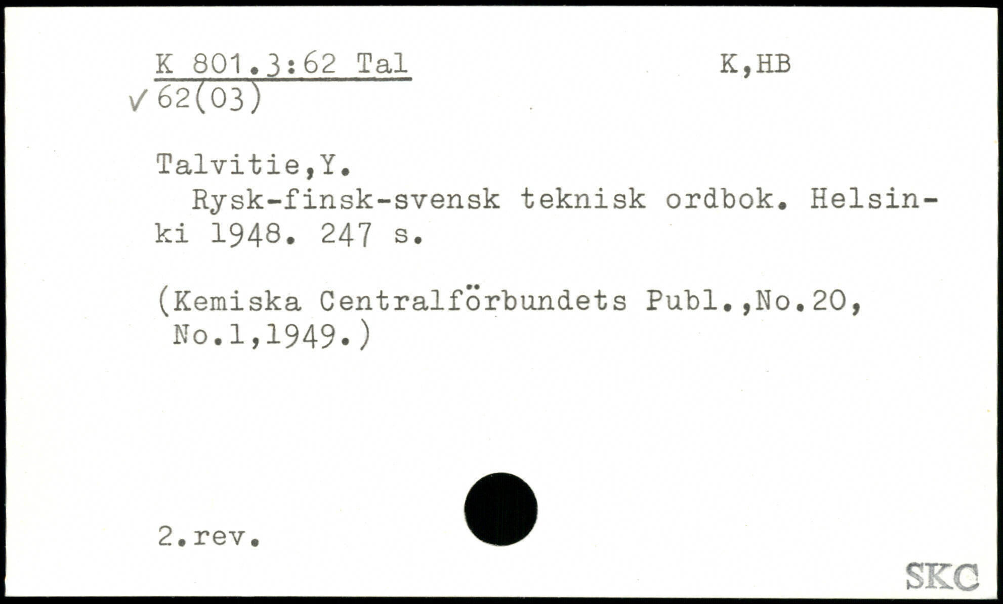 Rysk-finsk-svensk teknisk ordbok. Helsin ki 1948.