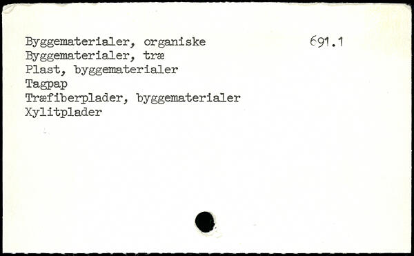 Byggematerialer, organiske 69I.1 Byggematerialer, træ Plast, Byggematerialer Tagpap Træfiberplader, byggematerialer Xylitplader